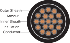 • Armouring: Single armouring of galvanised steel strip / wire
