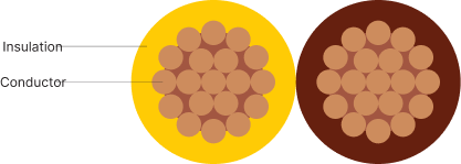 Soft annealed electrolytic copper Cu-ETP1 according to DIN EN 13602, bare or tinned copper construction acc. to ISO 6722-1